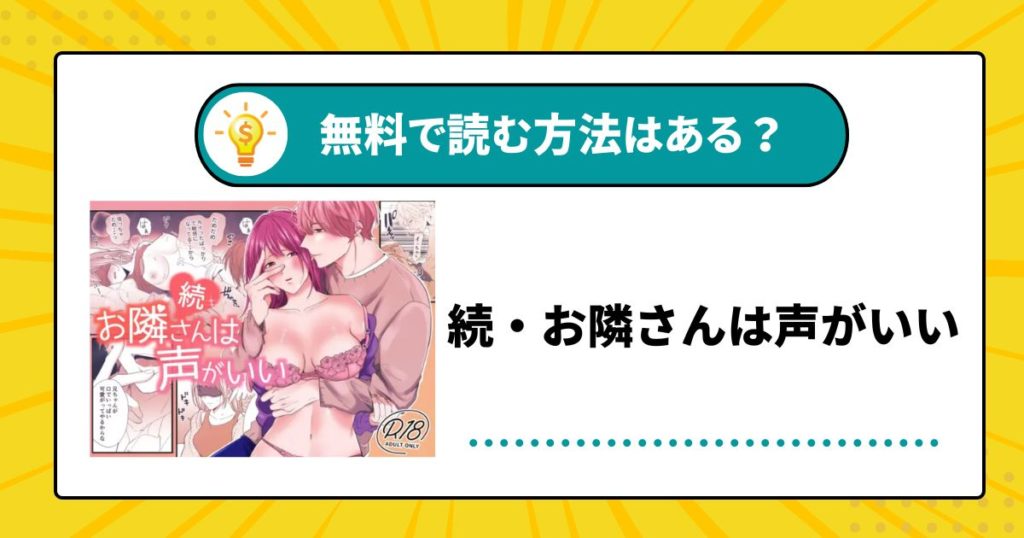 漫画「続・お隣さんは声がいい」を全巻無料で読む方法を徹底調査!