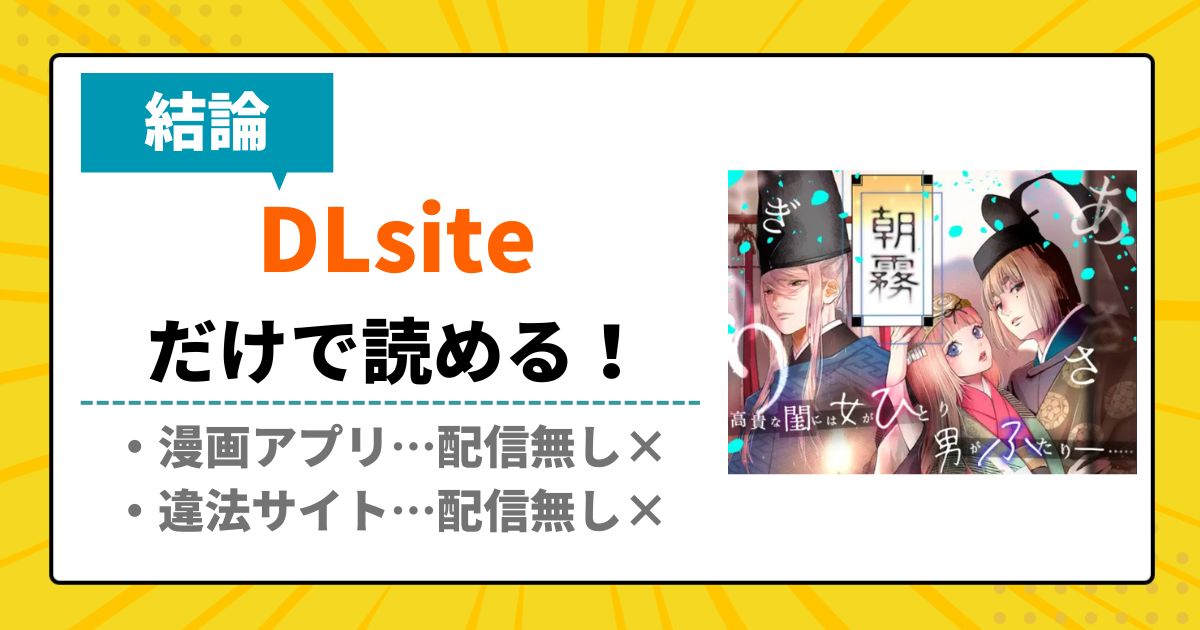 「朝霧〜高貴な閨の指南役〜」は現在DLsiteで独占配信されており、他のサイトで読むことはできません。