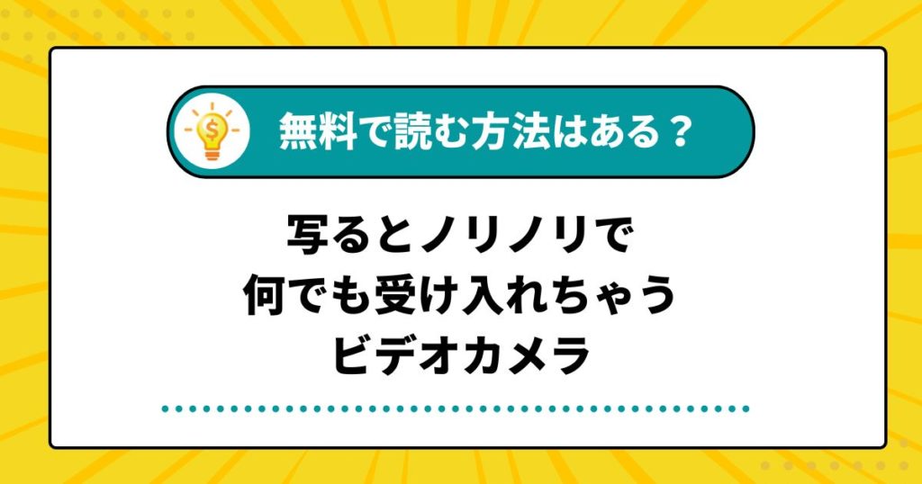 広告で人気の漫画「写るとノリノリで何でも受け入れちゃうビデオカメラ」を無料で読んでみたいとお考えではありませんか? 今回は、漫画「写るとノリノリで何でも受け入れちゃうビデオカメラ」を無料で読む方法はないのか、電子書籍サイトでの配信状況はも... -