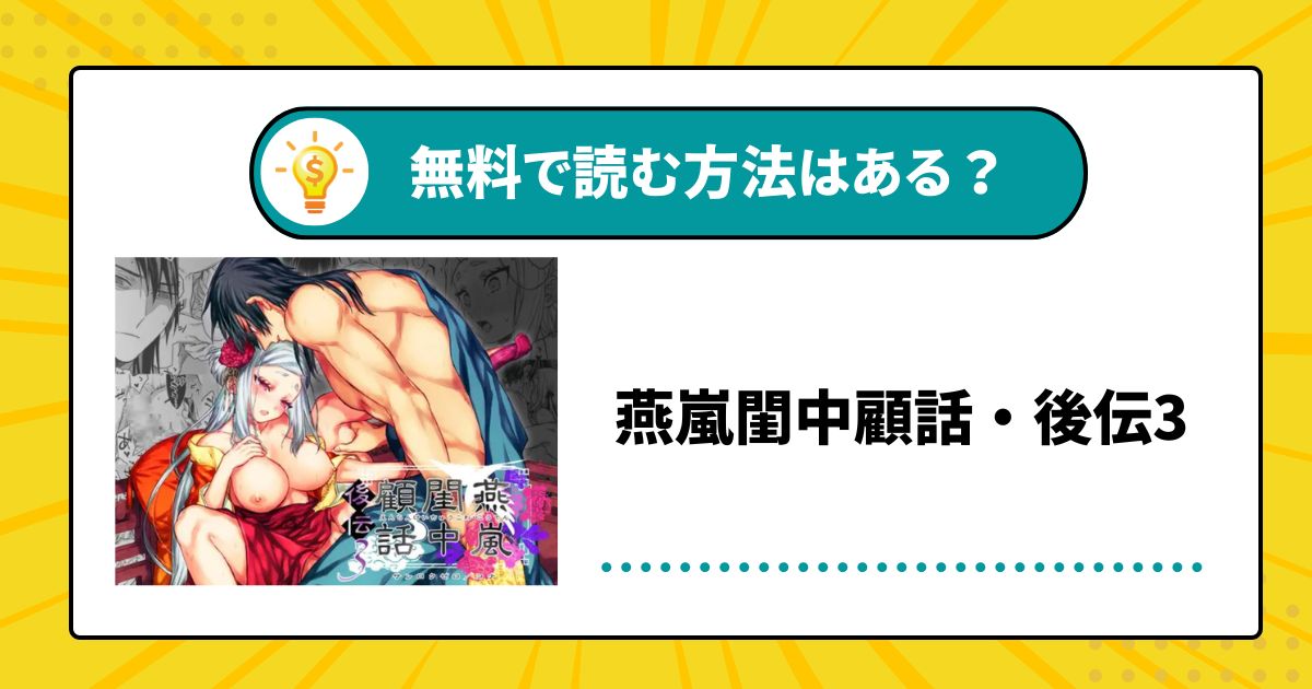 今回は、漫画「燕嵐閨中顧話・後伝3」を無料で読む方法はないのか、電子書籍サイトでの配信状況はもちろん、rawやhitomiなどの違法サイトまで詳しく調べてみました。