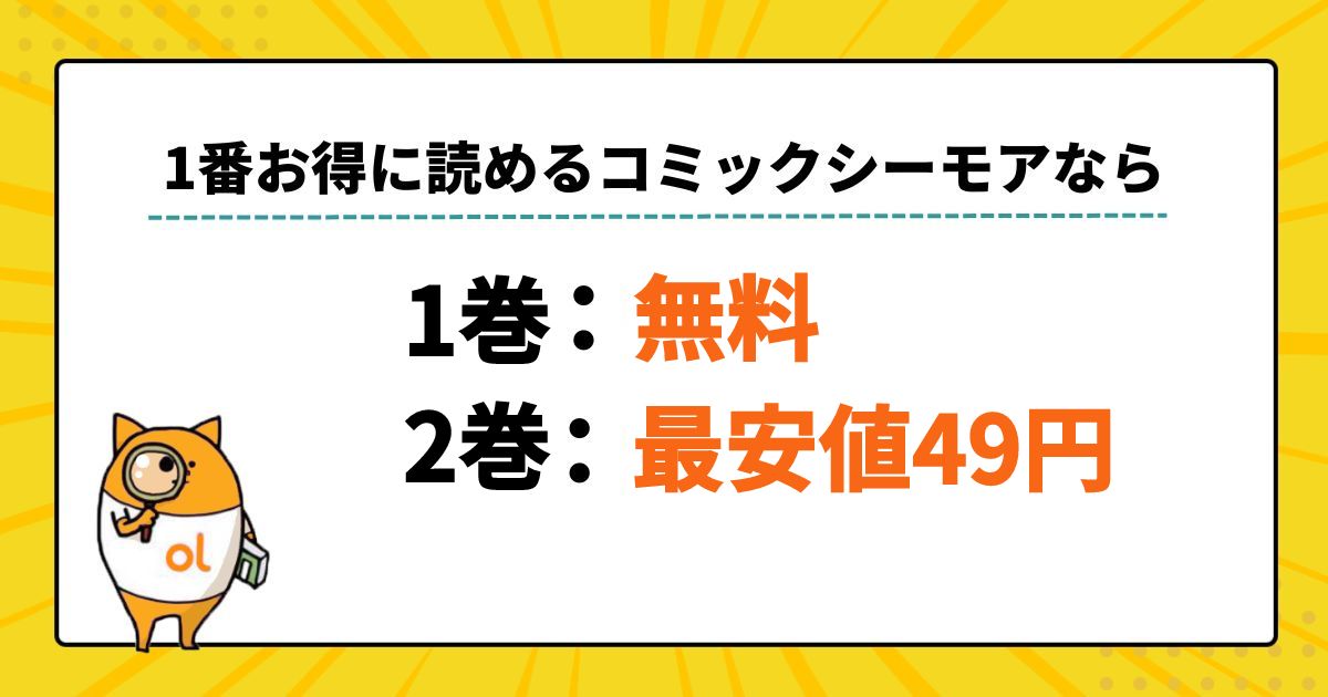 • コミックシーモアで新規会員登録をすると貰える70%OFFクーポンを使えば2巻が最安値49円で読める!