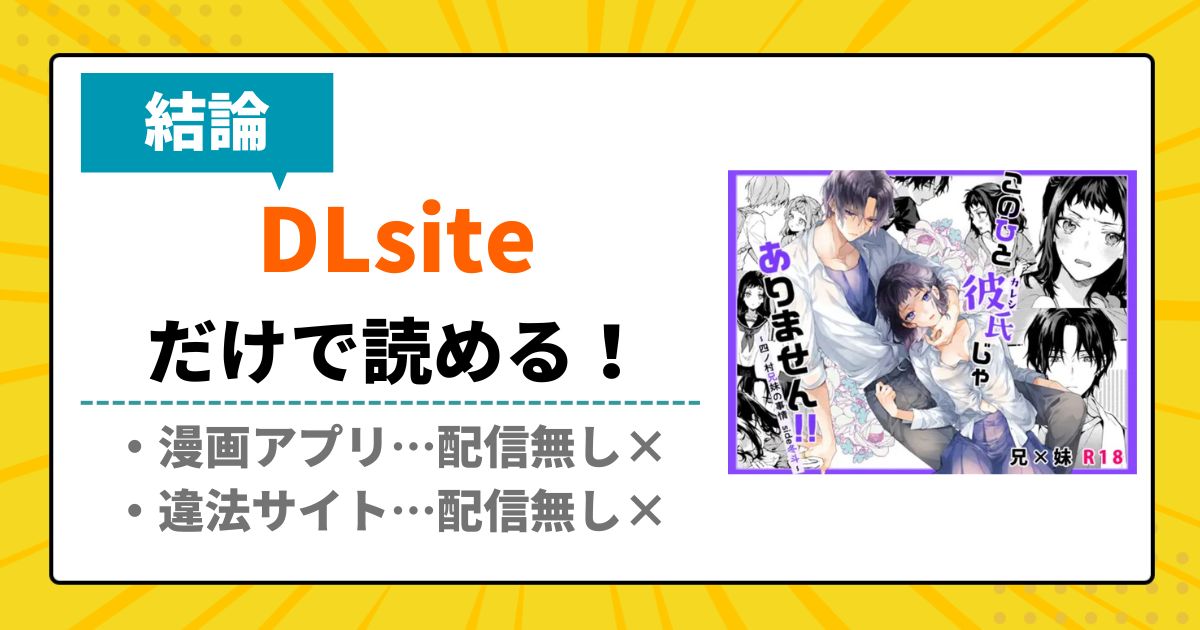 調査の結果、漫画「このひと彼氏じゃありません!!(2)~四ノ村兄妹の事情side冬斗~」はDLsiteでしか読めないと判明しました。