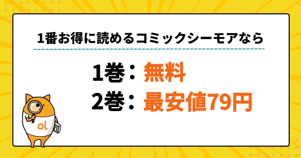 - コミックシーモアで新規会員登録をすると貰える70%OFFクーポンを使えば2巻が最安値79円で読める!
