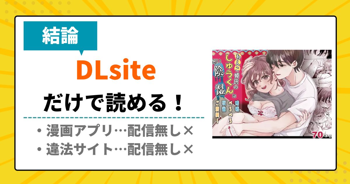 調査の結果、漫画「わんこ彼氏のしゅうくんは怒ると陰湿ー嫉妬・ぺろぺろ・反省・ご褒美!」はDLsiteでしか読めないと判明しました。