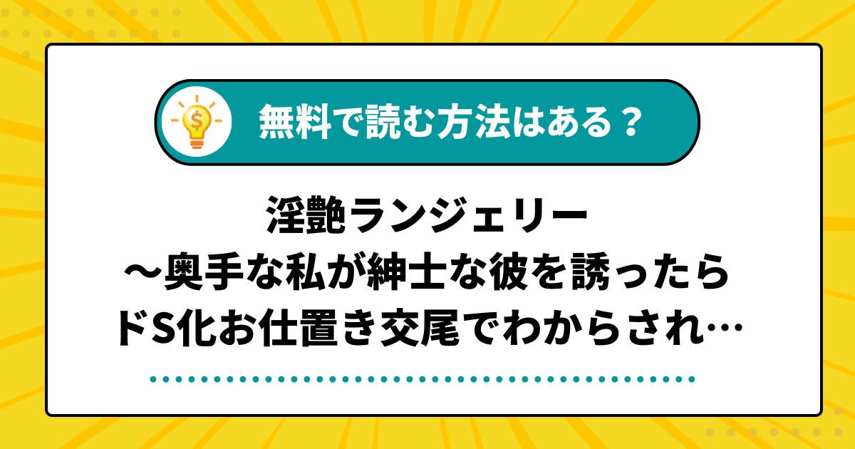 漫画「淫艶ランジェリー~奥手な私が紳士な彼を誘ったらドS化お仕置き交尾でわからされました~」を無料で読めるのか調査した結果